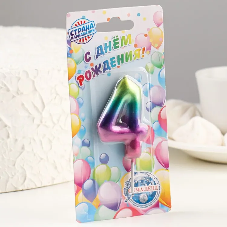 "Акварель" Свечи для торта "Цифра 4" 6см