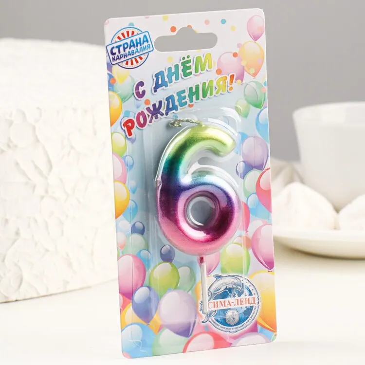 "Акварель" Свечи для торта "Цифра 6" 6см