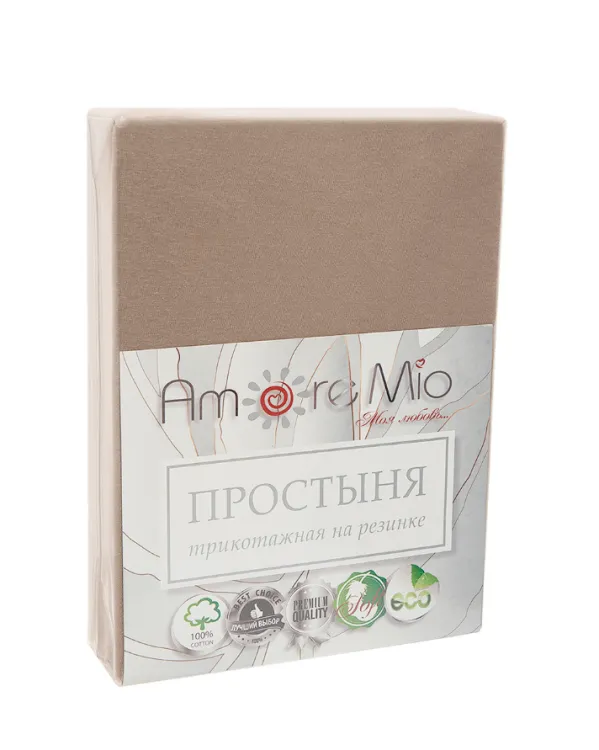 "Amore Mio" Простыня на резинке 160х200х20см, цв.кофейный