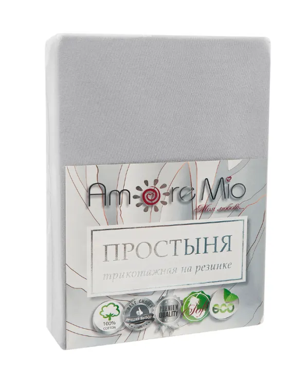 "Amore Mio" Простыня на резинке 180х200х20см, цв.серый