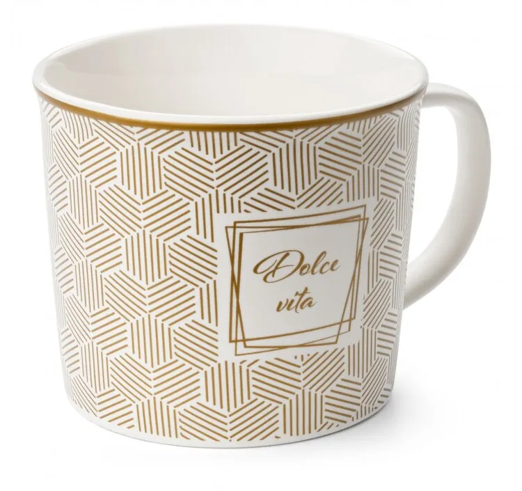 Кружка под любой интерьер, её дизайн продуман до мелочей. Белый фарфор украшен золотым узором, который придает ей изящество и элегантность. Этот изысканный аксессуар станет ярким дополнением вашего стола.