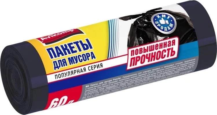 "AVIKOMP" Мешки для мусора повышенной прочности " Popular" ПНД, 60л, 20шт
