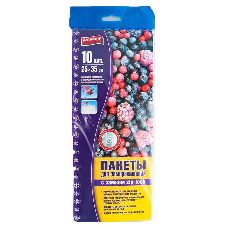 "AVIKOMP" Набор пакетов для хранения и заморозки с замком zip-lock 25х35см, 40мкм, 10шт.