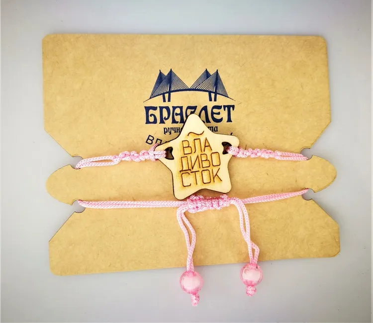 Браслет-шнурок с деревянной подвеской "Звезда Владивосток" 20см