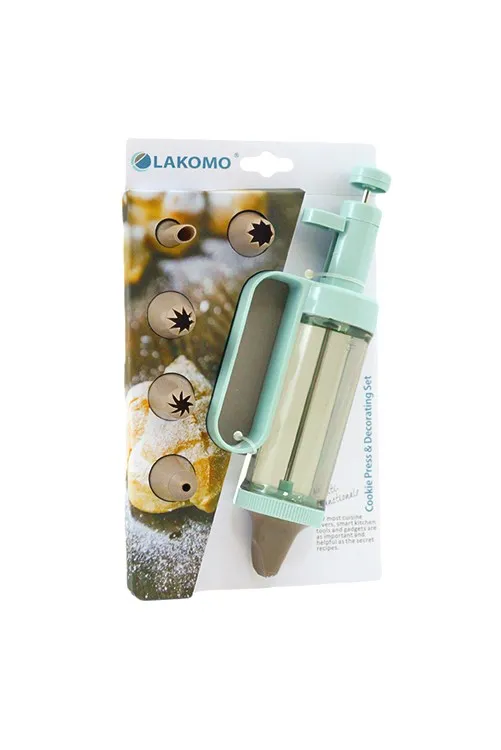 Шприц для кондитерских изделий с 6 разными насадками позволит вам легко украсить свои десерты. Пластиковый корпус с металлическим стержнем обеспечивает надежность и долгий срок службы этого инструмента. Этот набор идеально подойдет для украшения тортов, изготовления безе, эклеров, профитролей и другой выпечки.