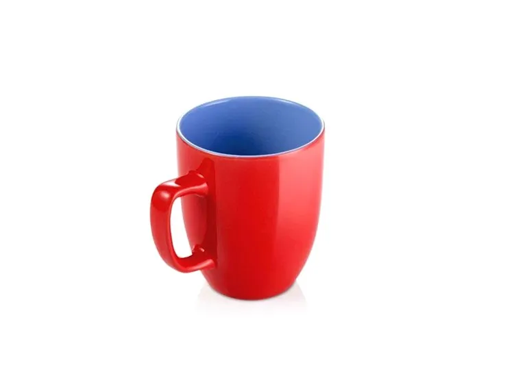 Идеальное сочетание практичности и стиля с этой удобной керамической кружкой для напитков. Она станет прекрасным дополнением к вашему утреннему чаю или кофе как дома, так и в офисе. С ярким и выразительным дизайном, эта кружка оживит любой стол. Однотонная лицевая сторона насыщенного красного цвета привносит тепло и энергию, в то время как внутренняя синяя часть добавляет глубины и контраста.