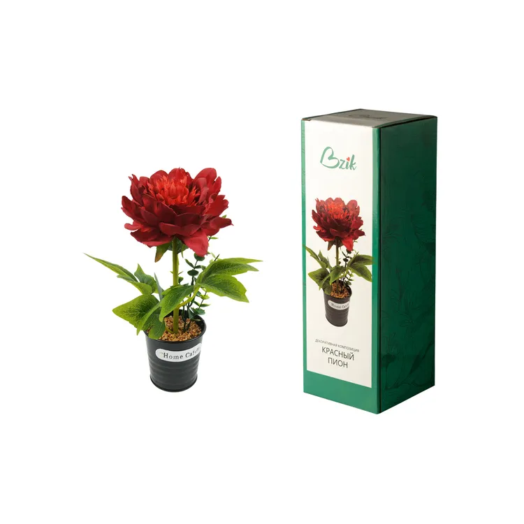 Композиция "Красный пион" обладает вечной свежестью и неподвластна времени, так как выполнена из качественных искусственных материалов, искусно имитирующих натуральный цветок. Это универсальное декоративное решение, которое привнесет в вашу жизнь красоту без ежедневного ухода, делая каждый день чуточку ярче и красочнее.