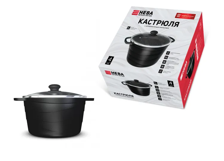 "Индукция" Гранит" Кастрюля со стекл. крышкой 4л