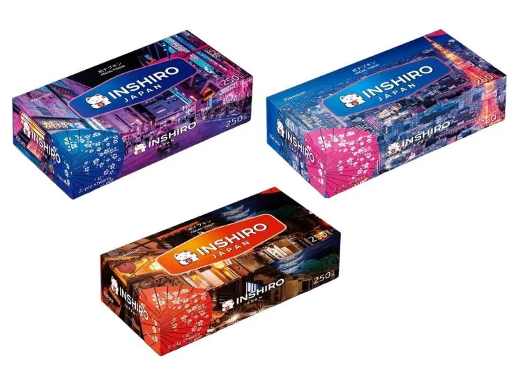 "INSHIRO"SilkFlower" Салфетки бумажные двухслойные "City" 250шт., цв.синий