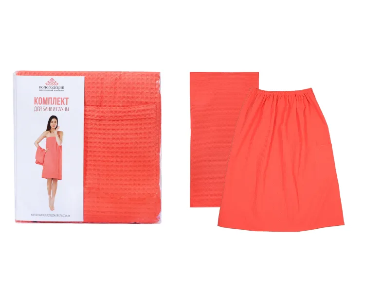 Комплект для сауны: килт 80х140см; полотенце 45х90см, цв.коралловый