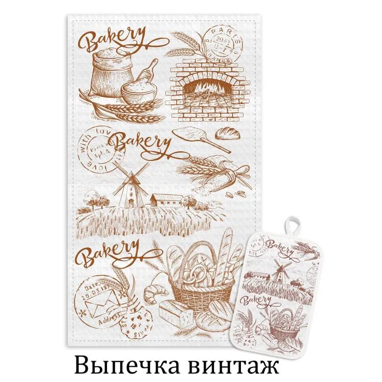 Комплект кухонный "Выпечка винтаж" полотенце 39х60см, прихватка 14х22см
