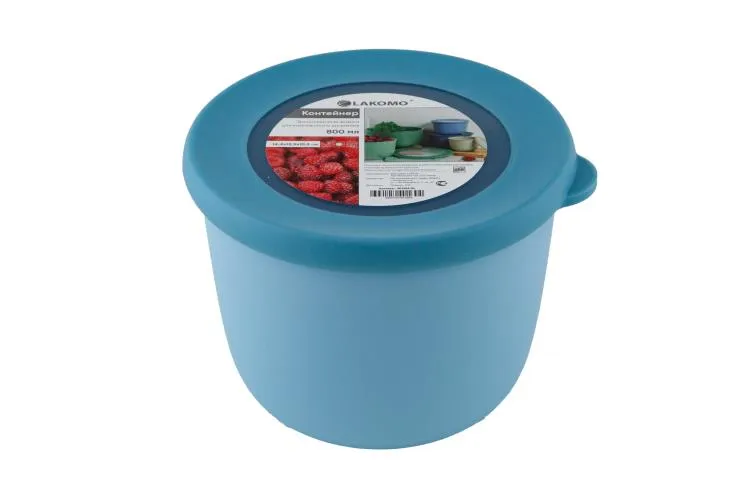 Контейнер пластик 0,8л круг 14,4х13,5х10,5см,цв.голубой