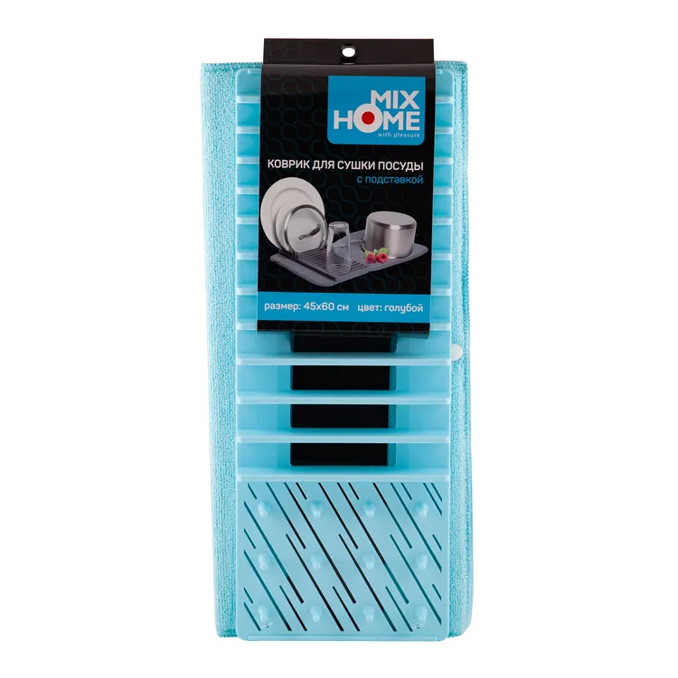 Коврик для сушки посуды с подставкой 45х60см, цв.голубой