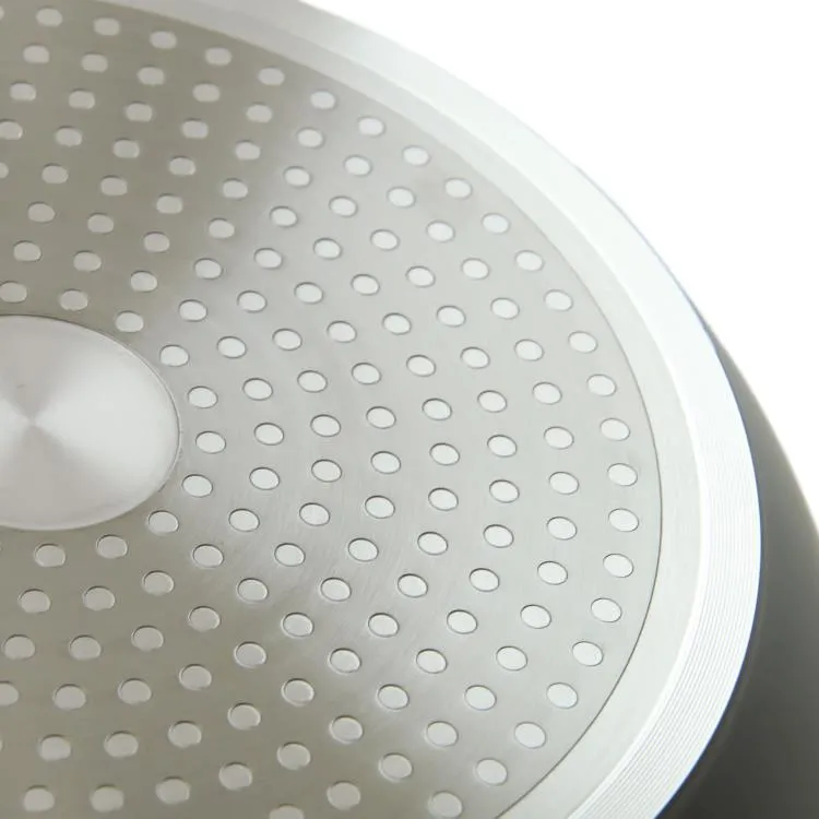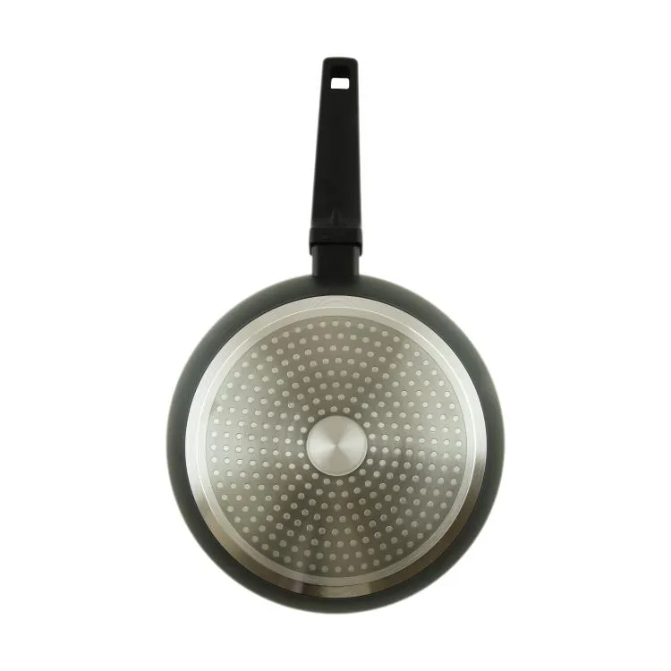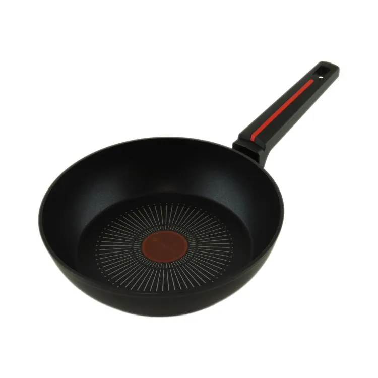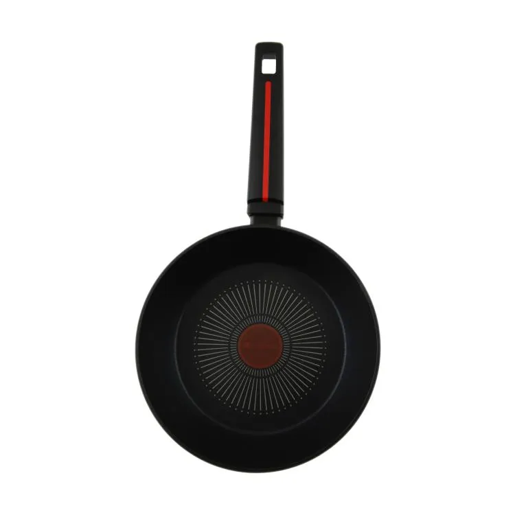 Откройте для себя комфорт и мастерство приготовления с глубокой сковородой! Изготовленная с применением современных технологий и имеющая литой алюминиевый корпус, сковорода гарантирует превосходный результат при жарке и тушении. С технологией равномерного нагрева ваша пища будет приготовлена одинаково хорошо по всей поверхности, что делает её идеальной для различных блюд. Экологичное многослойное покрытие делает этот сотейник антипригарным и устойчивым к повреждениям. Ручка из ударопрочного пластика с антискользящим покрытием Soft Touch обеспечивает комфорт и уверенность во время использования, а возможность подвеса добавит удобства в хранении. Простота ухода – ещё одно преимущество: сковорода без проблем может быть вымыта в посудомоечной машине. указывает на достижение оптимальной температуры для жарки.
