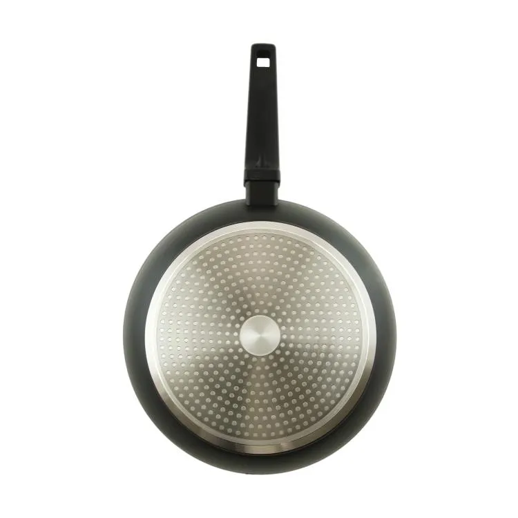 Профессиональная сковорода с толстостенными корпусом — отличный инвентарь для приготовления разнообразных блюд на кухонной плите. Литая сковорода с антипригарным покрытием и индукционным дном обеспечивает равномерный нагрев, что делает жарку легкой и приятной. Уникальная технология индикации нагрева поможет вам контролировать процесс готовки, а экологичное многослойное покрытие обеспечит долгий срок службы. Термоспот на дне станет отличным подсказчиком для определения оптимальной температуры приготовления. Эта алюминиевая сковорода оснащена удобной ручкой из ударопрочного пластика с антискользящим покрытием Soft Touch, которая не только хорошо лежит в руке, но и можно повесить на крючок после использования. Подходит для всех видов плит, включая индукционные. Сковорода с антипригарным покрытием — незаменимый кухонный аксессуар для эффективной и комфортной готовки.