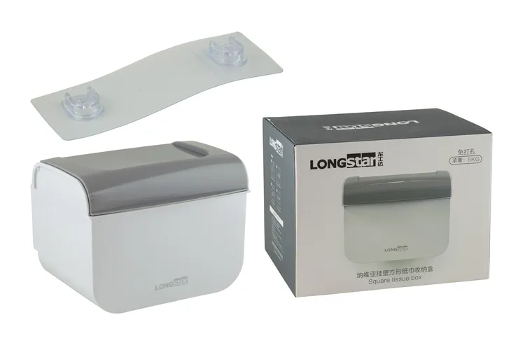 "LONGSTAR" Держатель для салфеток настен. с клеев крепл. 19,7х15,4х14,8см, цв.бело-серый