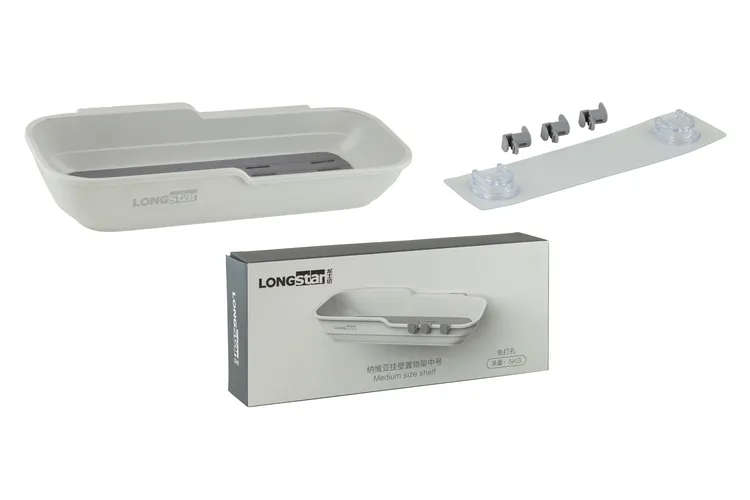 "LONGSTAR" Полка для ванной настенная с клеевым креплением 30х12,5х5см, цв.бело-серый
