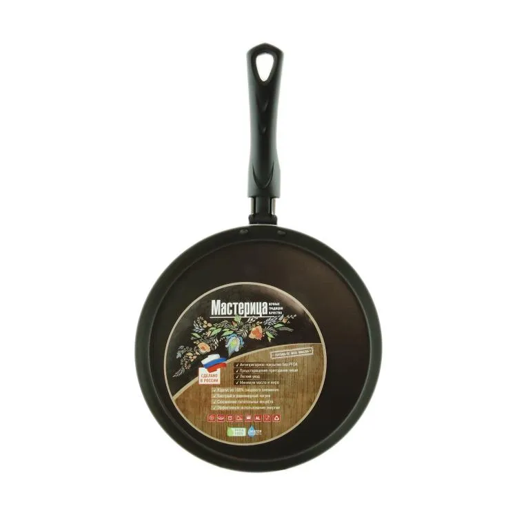 Она изготовлена из штампованного алюминия с антипригарным покрытием, имеет пластиковую ручку для комфорта при использовании.