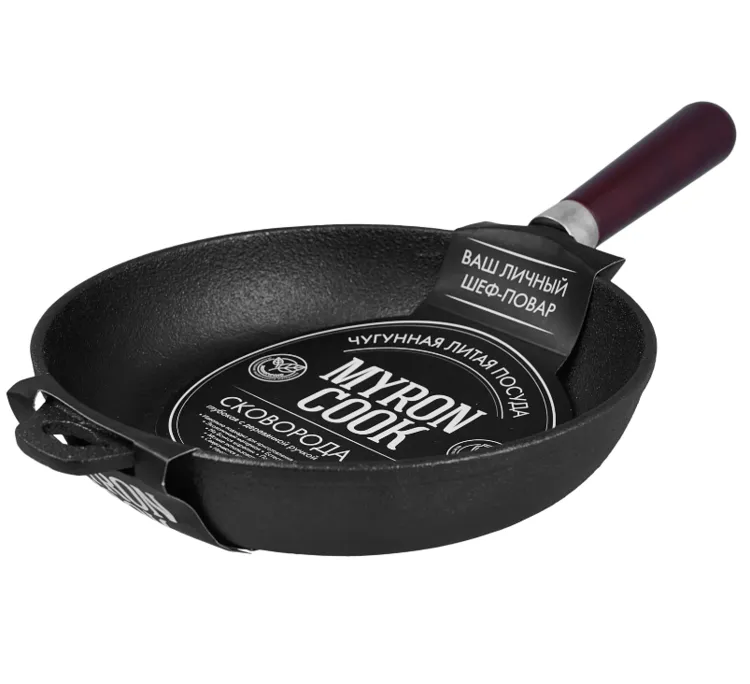 "MYRON COOK" Сковорода чугунная 26см глубокая h 5,5см, дерев.ручка