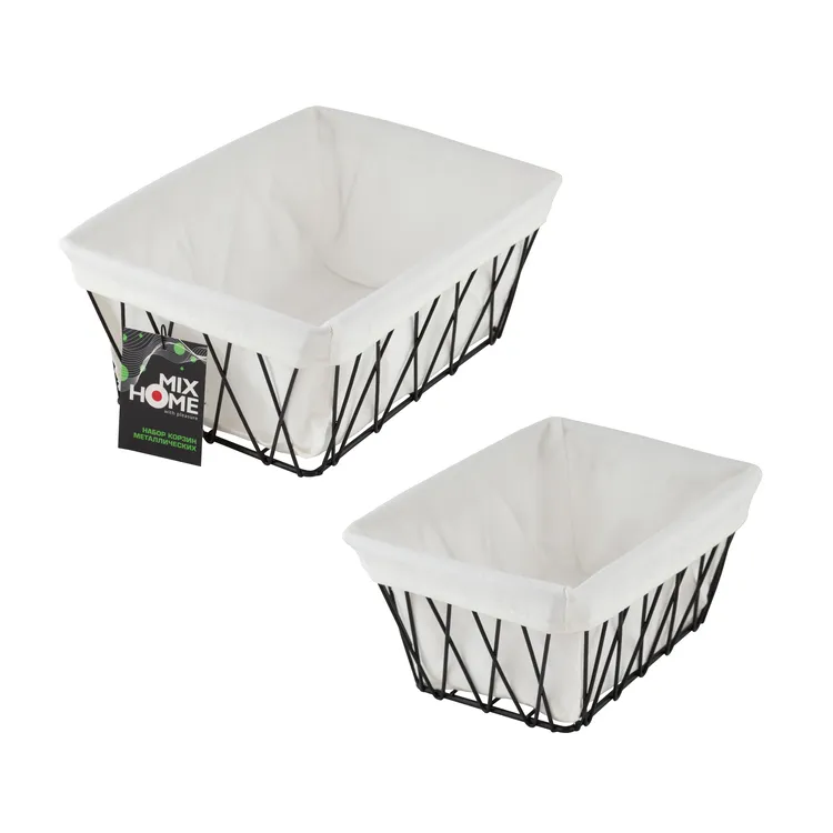 Н-р корзин металлических с текстильной вставкой 2шт, 25х18х10,6см; 20х15х10см, цв.черный