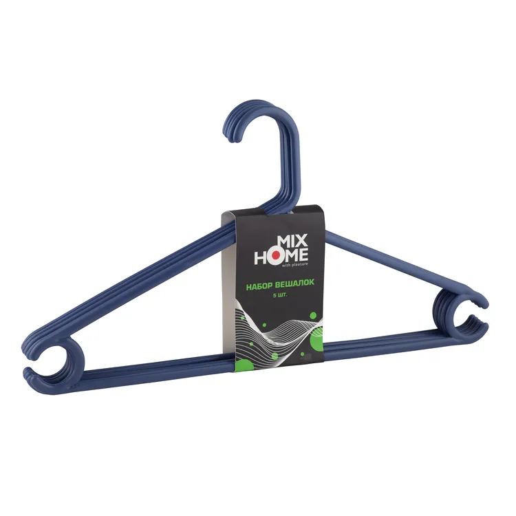 Н-р вешалок пластик. 5шт, 41х13см, цв.темно-синий