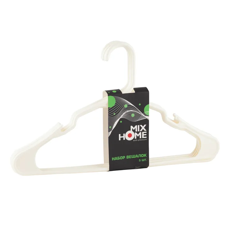 Н-р вешалок пластик. 5шт, 42х0,6х23см, цв.белый
