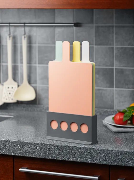 Набор разделочных досок 4шт., 21x7x38см, пластик, прямоуг., на подставке