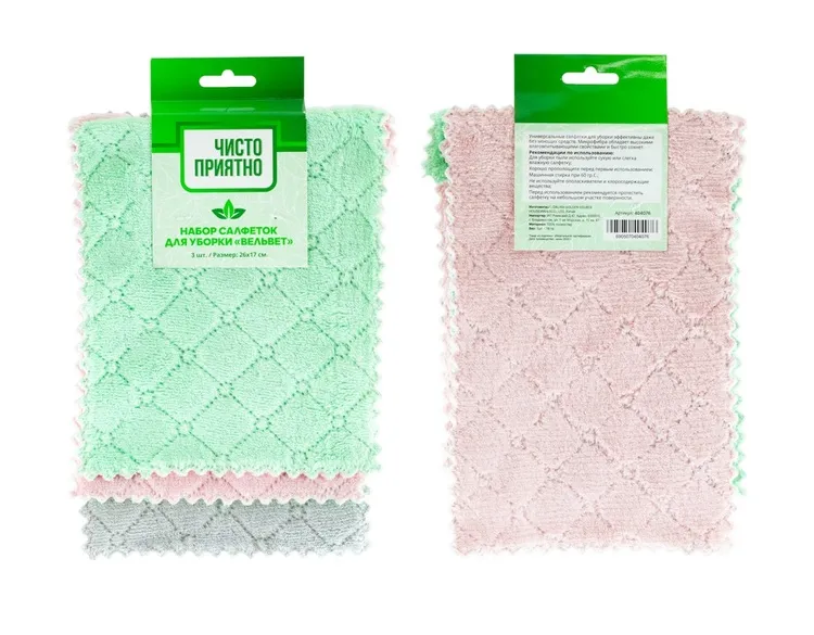 Набор салфеток для уборки "Вельвет" 3шт, 17х26см