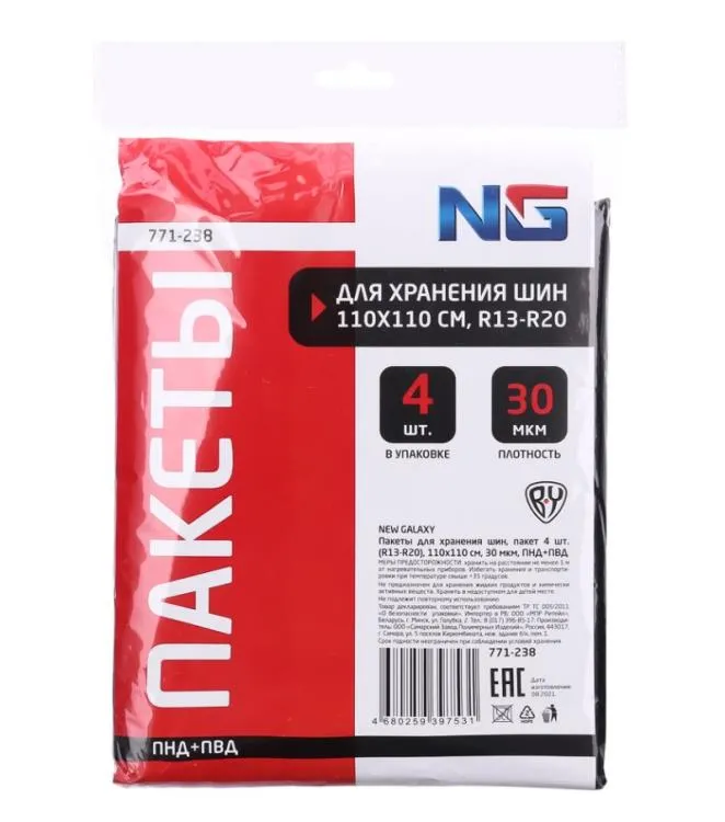 "NEW GALAXY" Мешки для автошин до R20, двухслойные ПВД+ПНД, 110х110см, 4шт