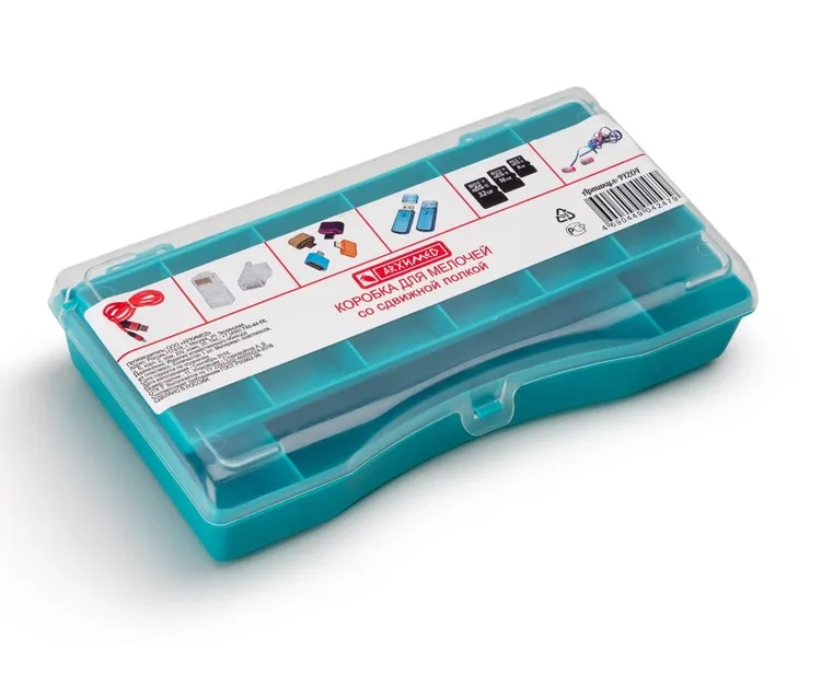 Органайзер для мелочей со сдвижной полкой 22х12х4,5см, цв.бирюзовый