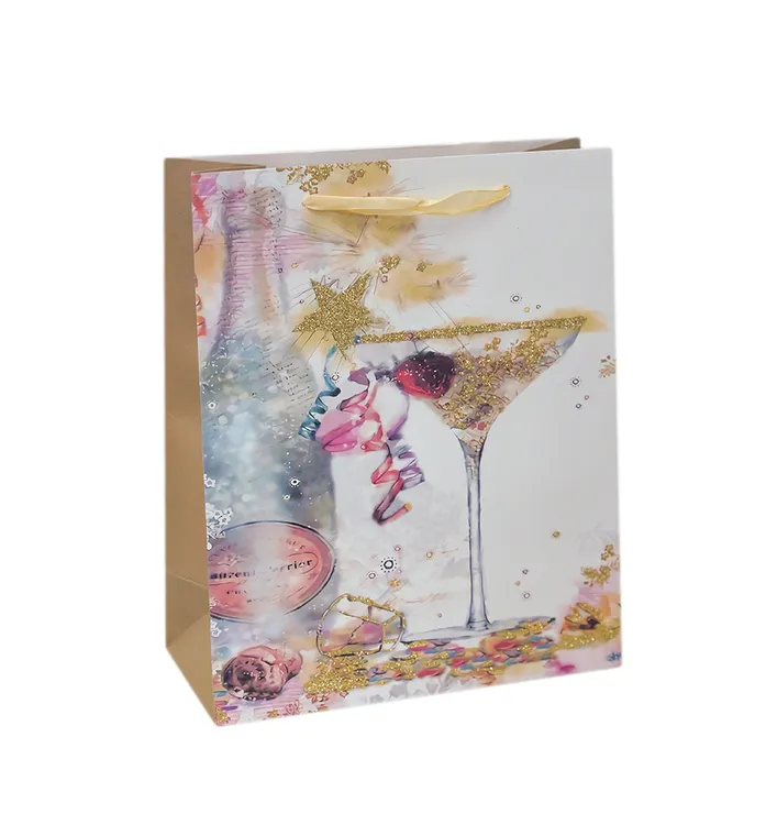 Пакет бумажный "Бокал шампанского" 32х26х12см