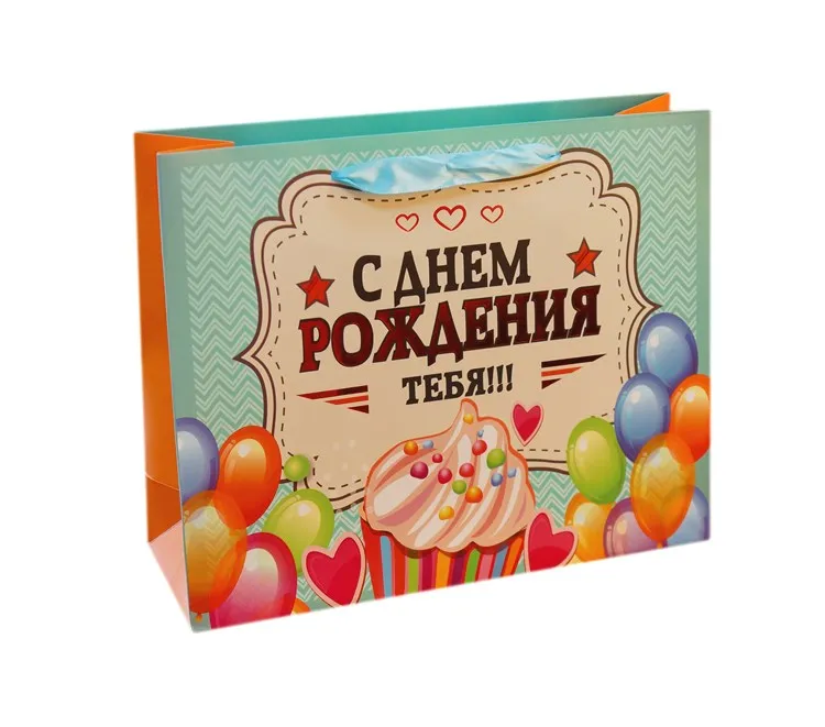 Пакет бумажный "С Днем рождения тебя" 26х32х11см