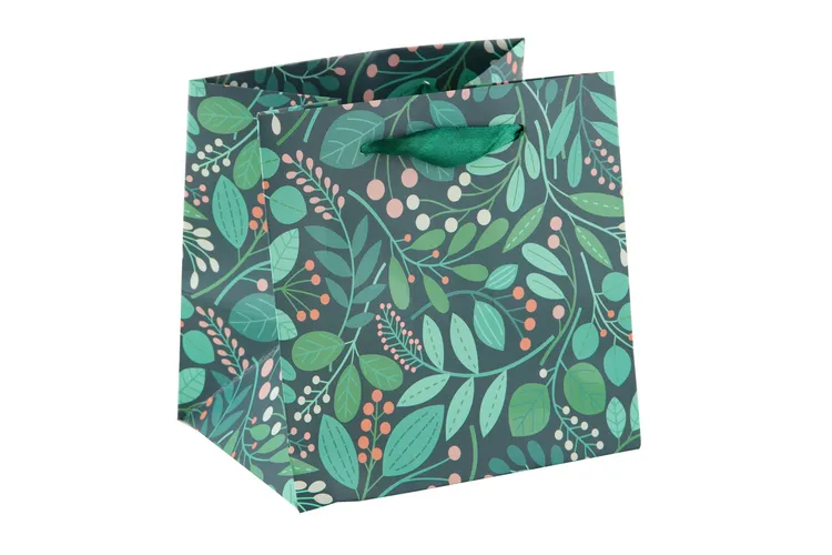 Пакет бумажный "Зеленые веточки" 15х15х12см