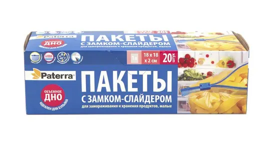 "PATERRA" Набор пакетов для хранения и заморозки с замком zip-lock 1л 20шт. 18х18см 40мкм