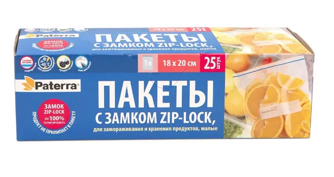 "PATERRA" Набор пакетов для хранения и заморозки с замком zip-lock 1л 25шт. 18х20см 40мкм