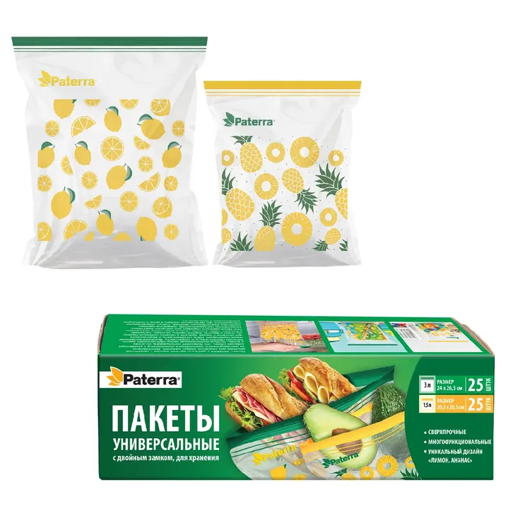 "PATERRA" Набор пакетов "Лимон, ананас" универсал. с 2замками 50шт. 20,5х20,5см;24х26,5см