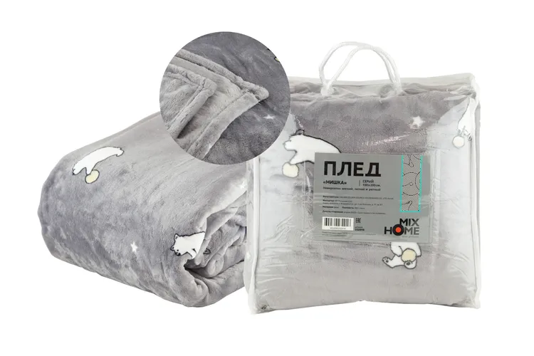 Плед "Мишка" 150х200см, пл.350 цв.серый