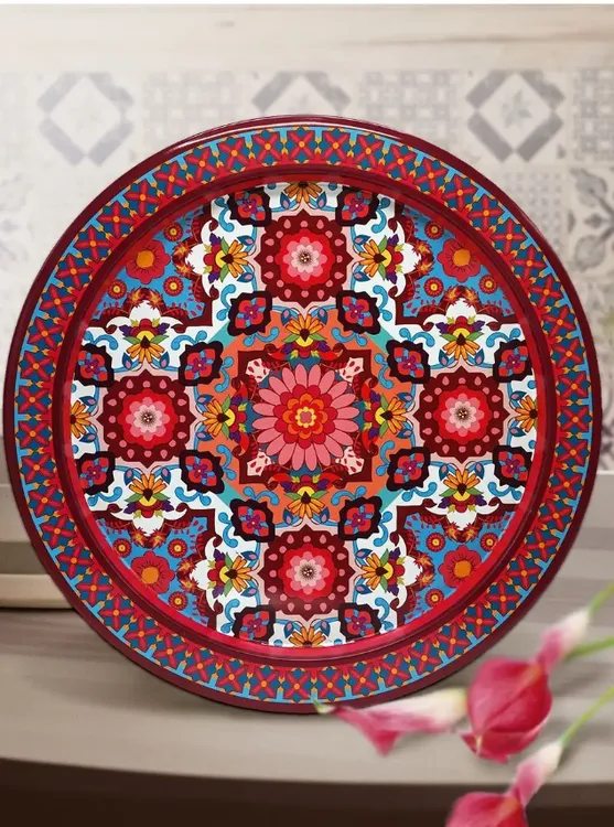 Поднос жестяной "Времена года" 37,9см, цв.розовый