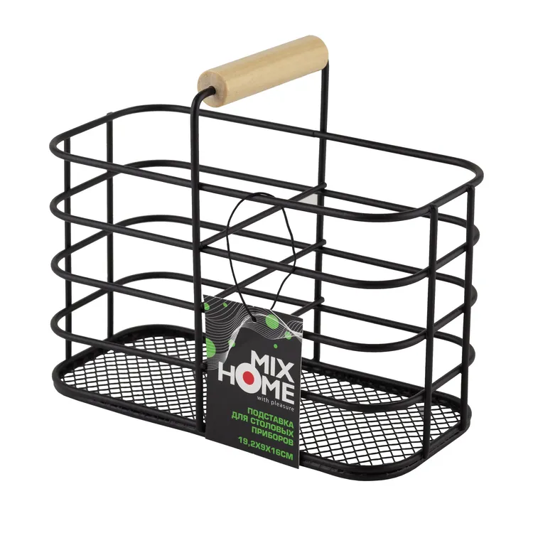 Изящная и функциональная металлическая подставка с деревянной ручкой для столовых приборов — это настольный органайзер, который станет незаменимым элементом на вашей кухне. Ее черный цвет придает изысканность и подчеркивает современный дизайн интерьера, а прочная конструкция обеспечивает долговечность и устойчивость.