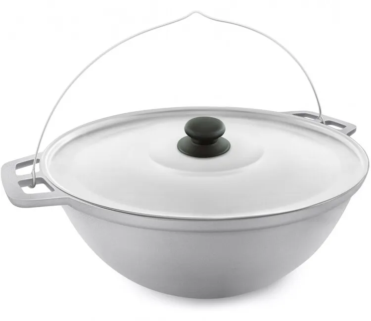 Казан глубокий "Походный" из непокрытого алюминия идеален для туризма.