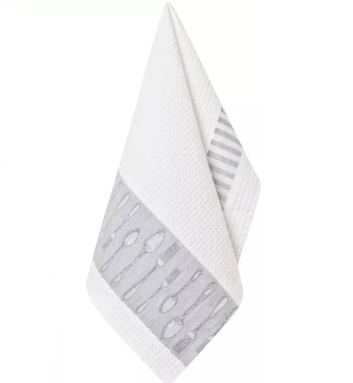 Полотенце кухонное "Ложки/вилки" 50х70см цв.серый/белый