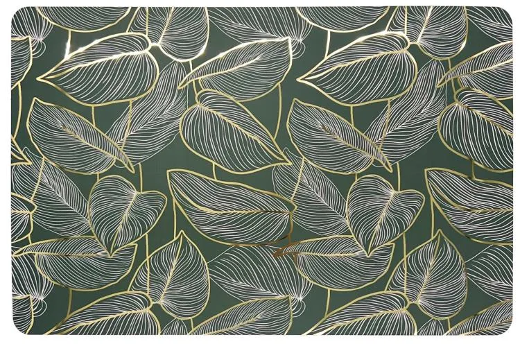 Сервировочная салфетка – незаменимый элемент элегантного стола. Используемая как выразительный плейсмат, она не только служит стильными подставками под тарелки, но и защищает поверхность стола от повреждений. Зеленая салфетка с изысканным принтом тропических листев в золотом контуре позволит вам окунуться в атмосферу праздника и благополучия, подчеркнув безупречность вашего столового этикета.