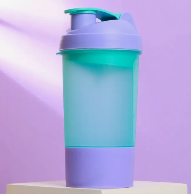 Шейкер для напитков 500мл с чашей под протеин, цв.фиолетово-голубой