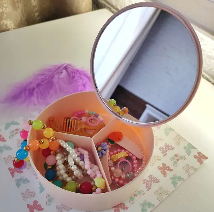 Шкатулка ювелирная с зеркалом d=14см, цв.розовая