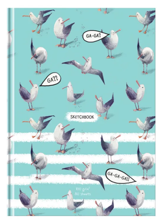 Скетчбук BG серии «Чайки» удобного формата А5 и размера 151*211 мм со стильным изображением является прекрасным помощником в создании эскизов, быстрых набросков, а также записей. Твёрдая обложка (7БЦ) выполнена из картона с матовой ламинацией и блестками. Внутренний блок состоит из 80 нелинованных белых листов офсетной бумаги плотностью 100 г/кв. м.