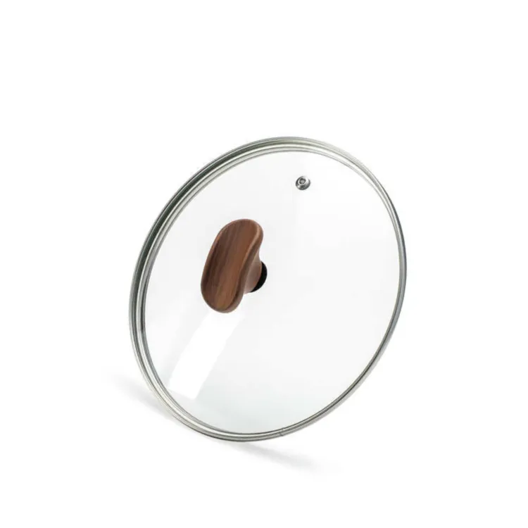 "TVS NATURA" Крышка стеклянная 28см, с металлическим ободком, ручка дерево, низкая