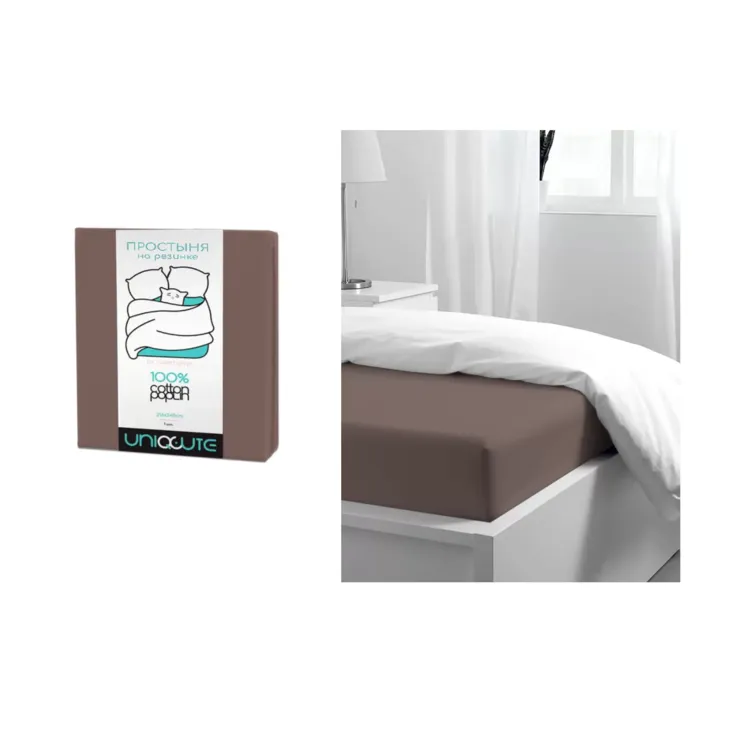 "Uniqcute" Простыня на резинке "Mocca" 180х200х25см, поплин