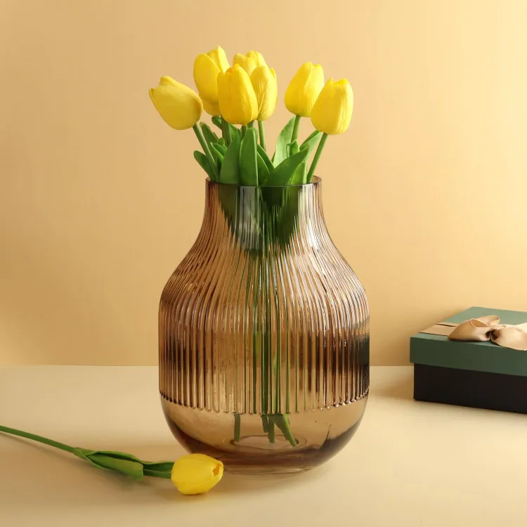 Эта эксклюзивная стеклянная ваза — настоящий акцент в оформлении любого пространства, будь то уютный дом, строгий офис или модное заведение. Оригинальный дизайн, выраженный в элегантных формах и нежно прозрачной коричневой окраске, делает вазу универсальным элементом декора, который с легкостью вписывается в различные стили интерьера.
