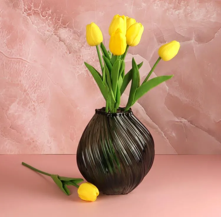 Ваза идеально подходит для невысоких цветов, её устойчивое основание обеспечивает надежную поддержку для ваших цветочных композиций. Поставьте ее на стол или комод – в любой точке комнаты она будет привлекать внимание и станет красивым акцентом.