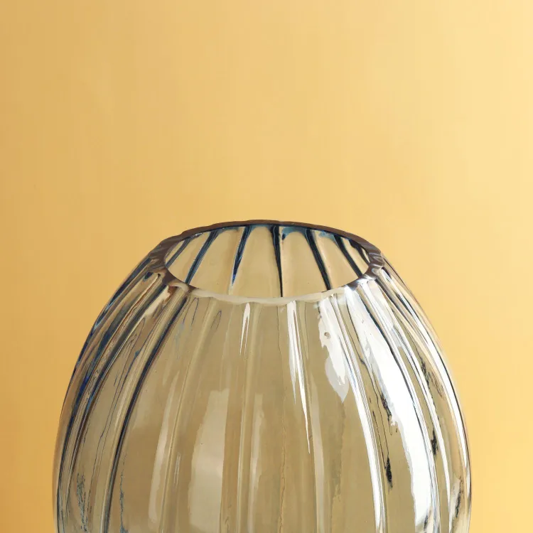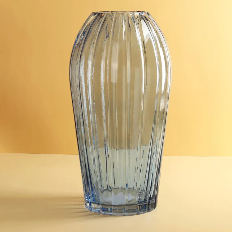 Уникальная стеклянная ваза - истинный кристалл среди предметов интерьера. С ней каждое помещение - будь то дом, офис, или заведение - наполнится особым сиянием и «изюминкой». Синий цвет вазы напоминает глубину океана, а прозрачность материала — игру солнечных лучей на поверхности воды.